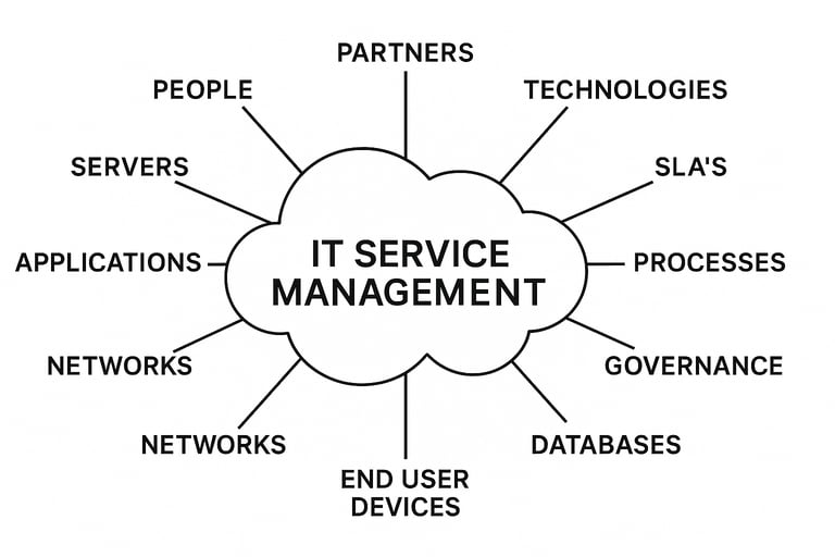 IT Service Management ("ITSM") succeeds when people, processes, partners and platforms operate as a unified system. The IT Information Library ("ITIL") framework and practices provide the operating model for that system – defining how IT services are designed, delivered, governed and continually improved.